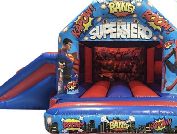 Bring heroic adventures to your next celebration with our Hero Combo Bouncy Castle — a colourful, action-packed bouncy castle combi with a side slide that's perfect for birthday parties and childrens parties. We offer reliable bouncy castles bouncy castle hire Hero Combo Bouncy Castle in Stonehaven aberdeenshire aberdeen, so families across the area can turn their garden into a mini metropolis of fun. 🎉